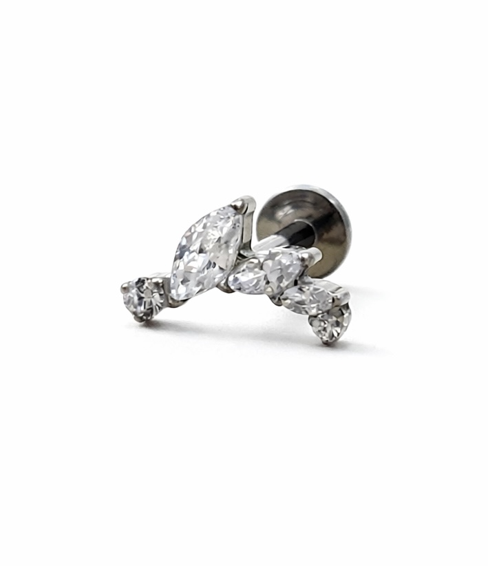 O topo cravejado proporciona luminosidade intensa e acabamento refinado, ideal para quem busca destaque na medida certa. Perfeito para composições modernas ou delicadas, é indicado para perfurações como helix, conch, flat e lóbulo.