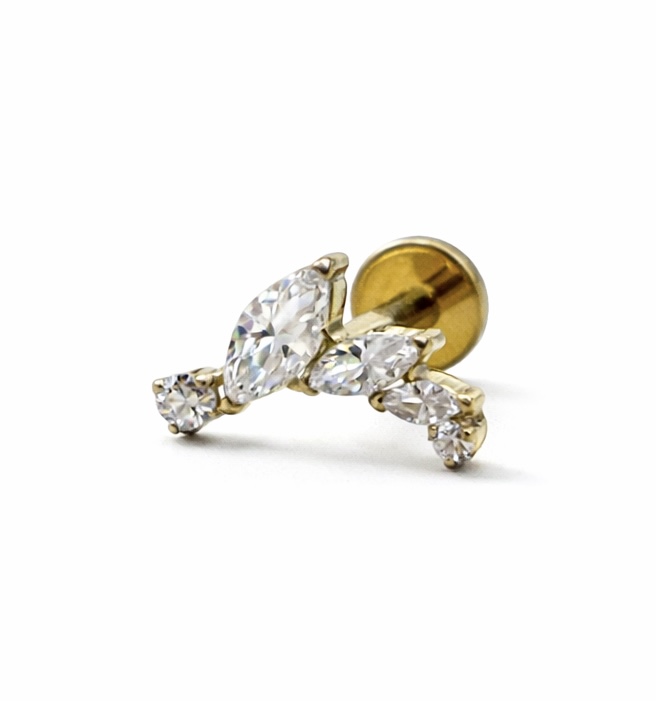 O design cravejado oferece luminosidade e destaque na medida certa, sendo perfeito para composições modernas ou delicadas. Leve e hipoalergênico, garante conforto para o uso diário, indicado para perfurações como helix, conch, flat e lóbulo.