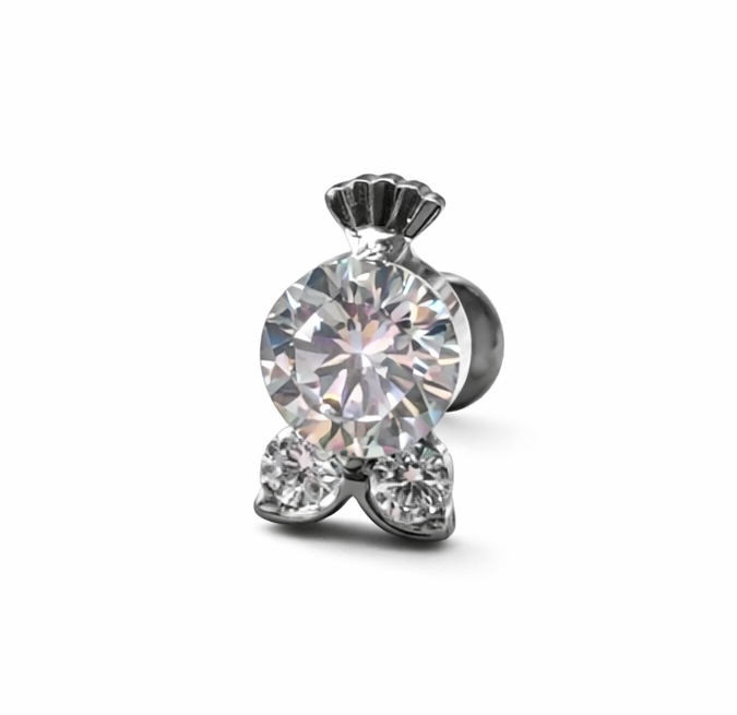 O destaque fica por conta da pedra, que adiciona luminosidade e sofisticação ao visual, sendo ideal para composições delicadas ou combinações modernas. Indicado para perfurações como helix, tragus, conch, flat e lóbulo.