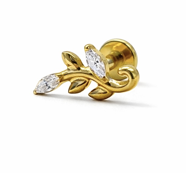 O design em formato de ramo traz um toque natural e moderno ao visual, ideal para composições harmoniosas e cheias de estilo. Leve e hipoalergênico, proporciona conforto para o uso diário, sendo indicado para perfurações como helix, tragus, conch, flat e lóbulo.
