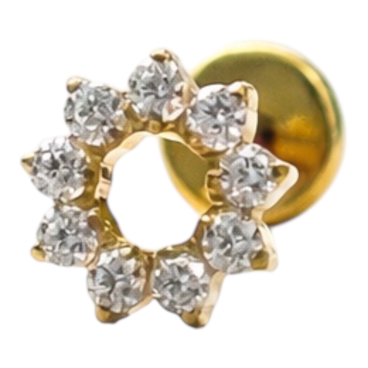 Labret Titânio PVD Redondo Vazado Cravejado – Espessura 1.2mm, Comprimento 8mm