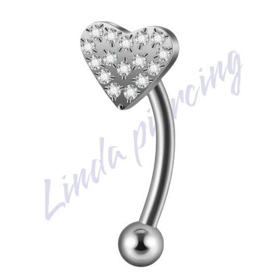 Minibarbell Curvo Titânio Coração cravejado Zircônias