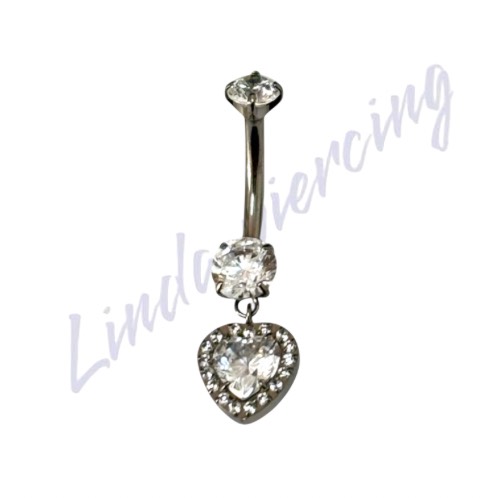 Umbigo Titânio Ponto de luz c/coração Cravejado