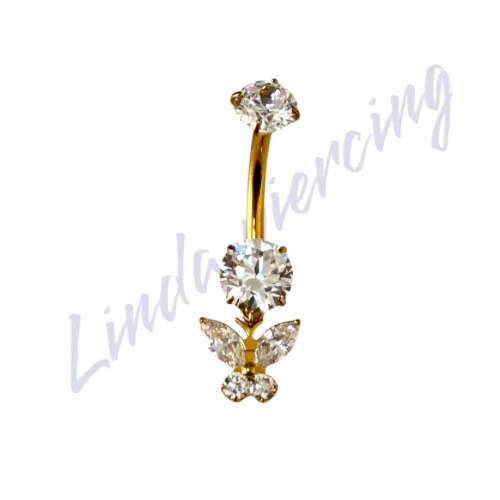Umbigo Titânio Pvd Ponto de luz c/Borboleta