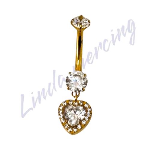 Umbigo Titânio Pvd Ponto de luz c/coração Cravejado